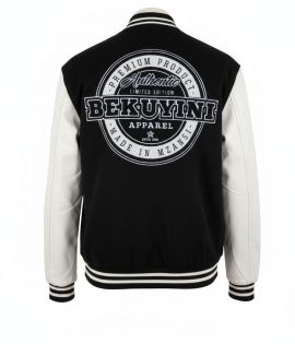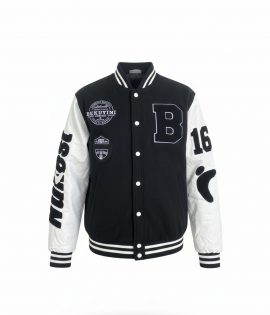 NUKEST Heritage Varsity Jacket – Black/White Classic